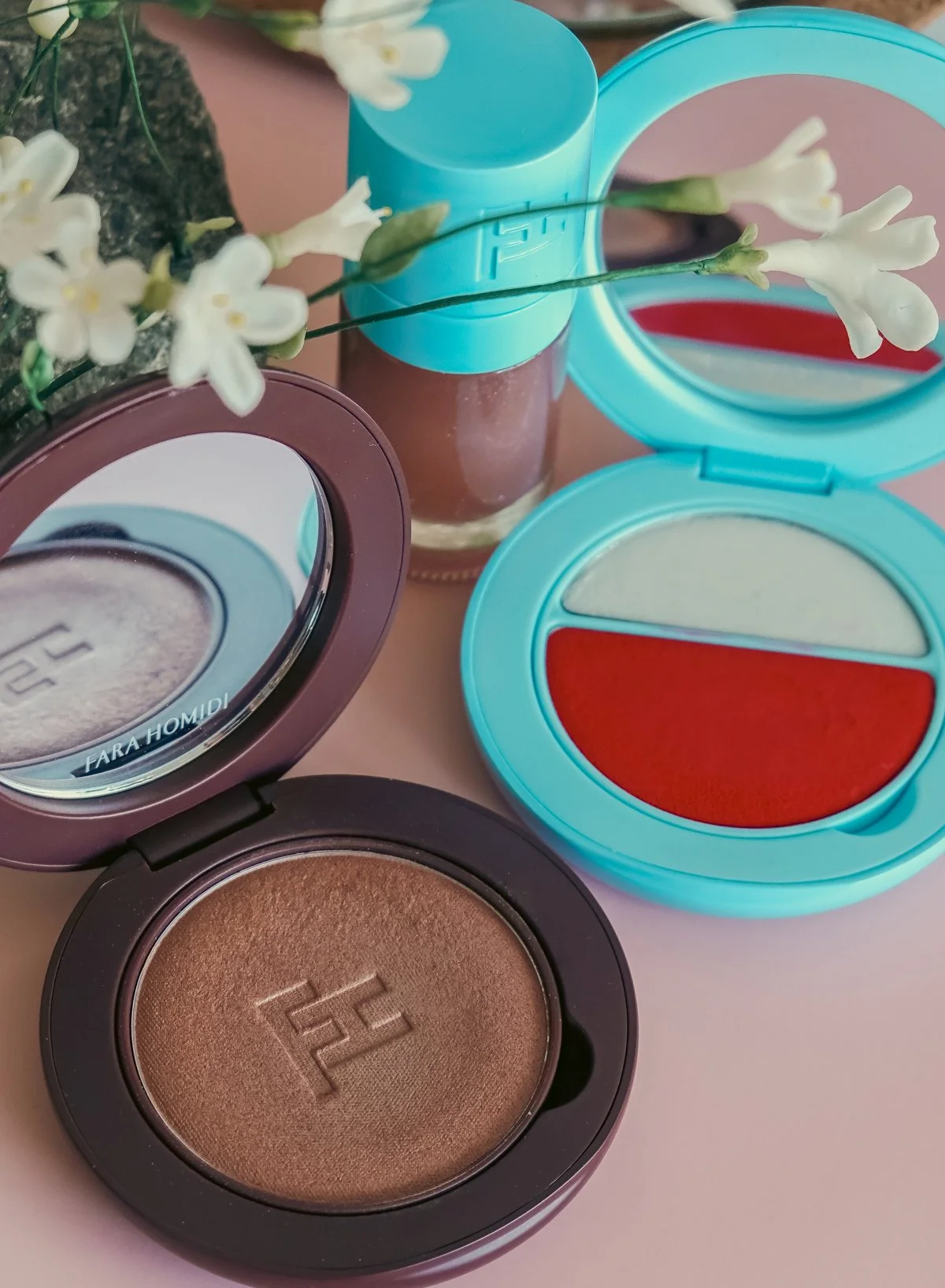 The refillable bronzer compact is heavy due to its metal and magnet construction. It feels luxurious, but it’s not something I’d carry around all day. This applies to most Fara Homidi compacts—stunning for the vanity, less ideal for travel.